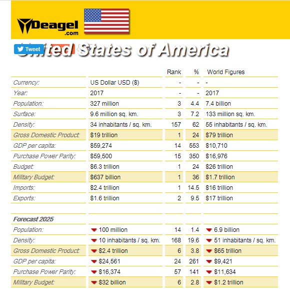 Why is the Deagel Report anticipating a reduction in US population of 227 million by 2025?