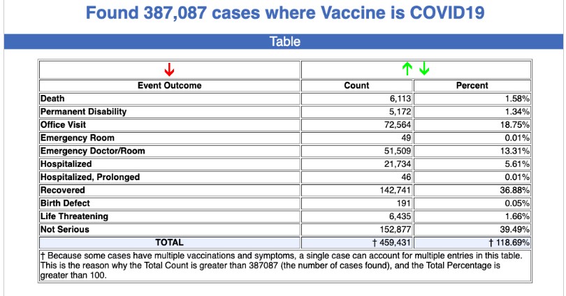 VAERS data released today by the CDC showed a total of 387,087 reports of adverse events from all age groups following COVID vaccines, including 6,113 deaths and 31,240 serious injuries between Dec. 14, 2020 and June 18, 2021.By Megan Redshaw96