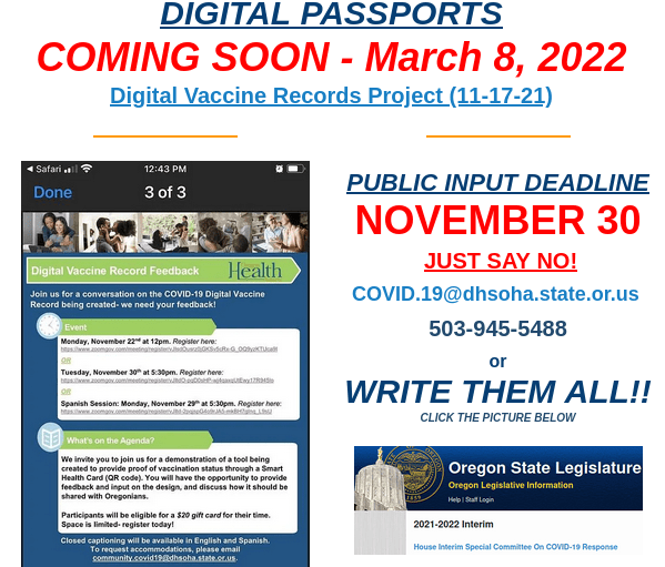 Oregon Vax Passport – November 30 Comment