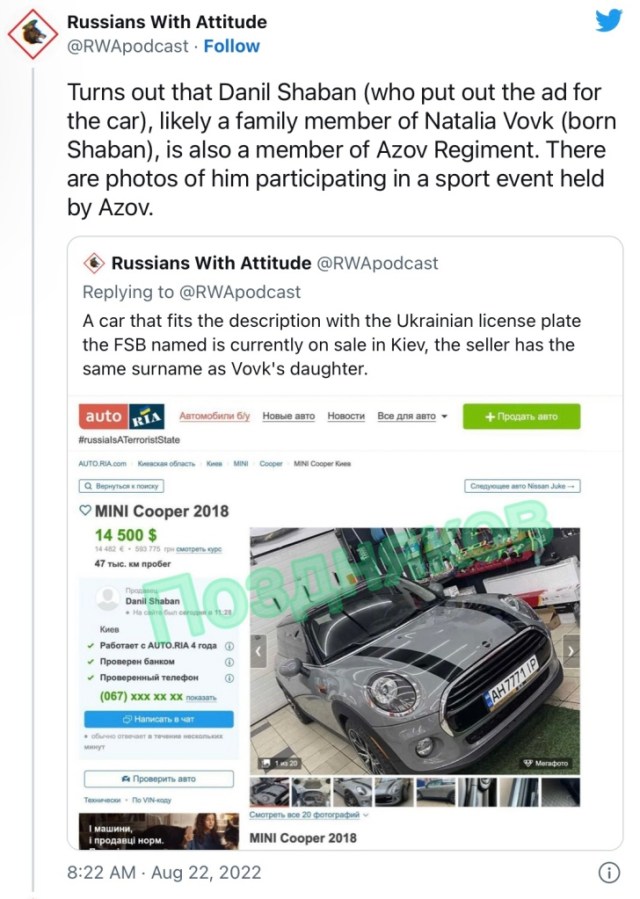 Ms Cat’s Chronicles ~> Danil Shaban, brother of Natalya Vovk, is a member of Azov: Ukraine – Dugina Killer Identified – War Of Attrition Continues