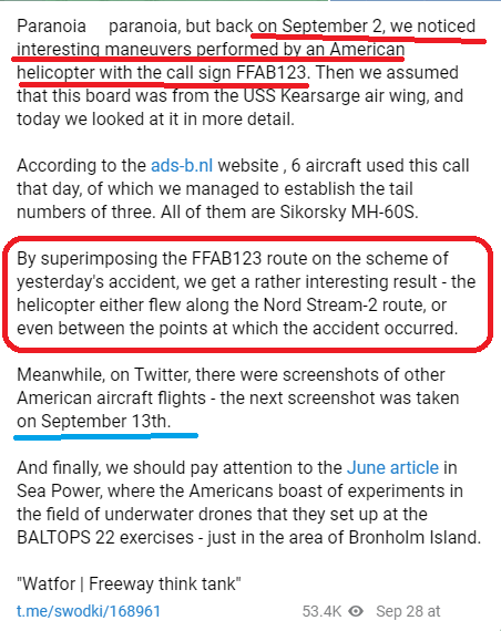 Analysts report US flights near the Nord Stream pipeline on the eve of the accident