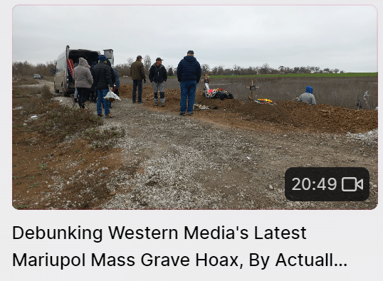 In recent days Western media have resurrected the “mass graves” near Mariupol claims, and since—unlike any of the people behind those claims, I’m actually in the Donetsk People’s Republic and actually went to the sites in question—I made this video to debunk the propaganda.