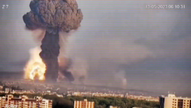 On May 13, 2023, in Khmelnytskyi, western Ukraine, about 325 km southwest of Kiev, Russian cruise missiles or/and drones have destroyed an ammunition depot. Secondary explosions and blaze were tremendous. At 4:52 am, local time, the European Mediterranean Seismological Centre (EMSC) recorded 3.4 magnitude shocks northwest of the city.