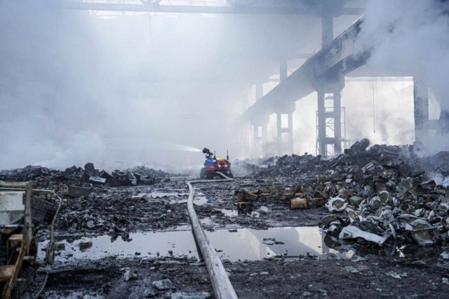 The day after the raid, the firefighters were still using robots to extinguish the destroyed ammunition depot