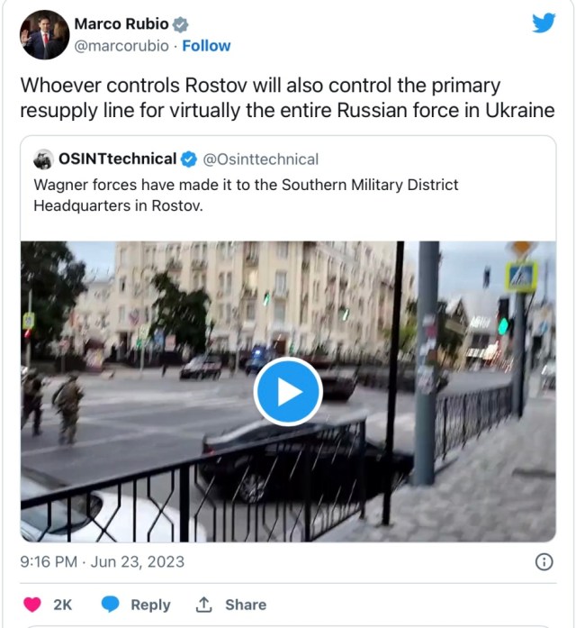 Francis Fukuyama, who hasn’t seen a regime change op that he hasn’t liked, and Michael McFaul, former US ambassador to Russia, are salivating over the Wagner Group mutiny!
